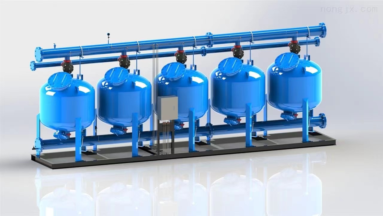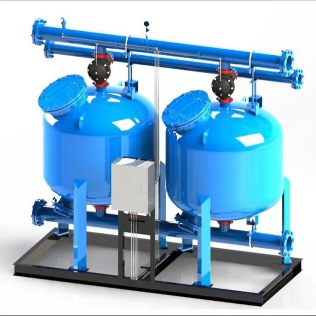 多罐組合,實現大水量、高濾速過濾,自壓反洗,根據壓差和時間控制,依次反洗