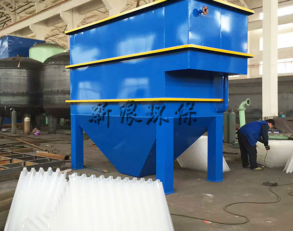 一體化絮凝原理污水沉淀設備主要由多排多層V型管傾斜組合而成。使用時,由于斜置的V型管壁的作用,各處沉淀到V型管內(nèi)壁上的泥渣均近距離滑向V型管的底角處并沿底角線自動向下滑出管腔,凈化后的清水從沉淀器上口排出,既有利于泥渣與上向流的進水拉開距離,避免了泥渣再次泛起的不利影響,又有利于將集中在V型管底角的泥渣自動沿底角線向下滑出管腔。改善了泥、水分離條件,能有效提高沉淀效果。具有結(jié)構簡單合理、沉淀效率高、出水水質(zhì)好,運行穩(wěn)定可靠、工程造價低等.